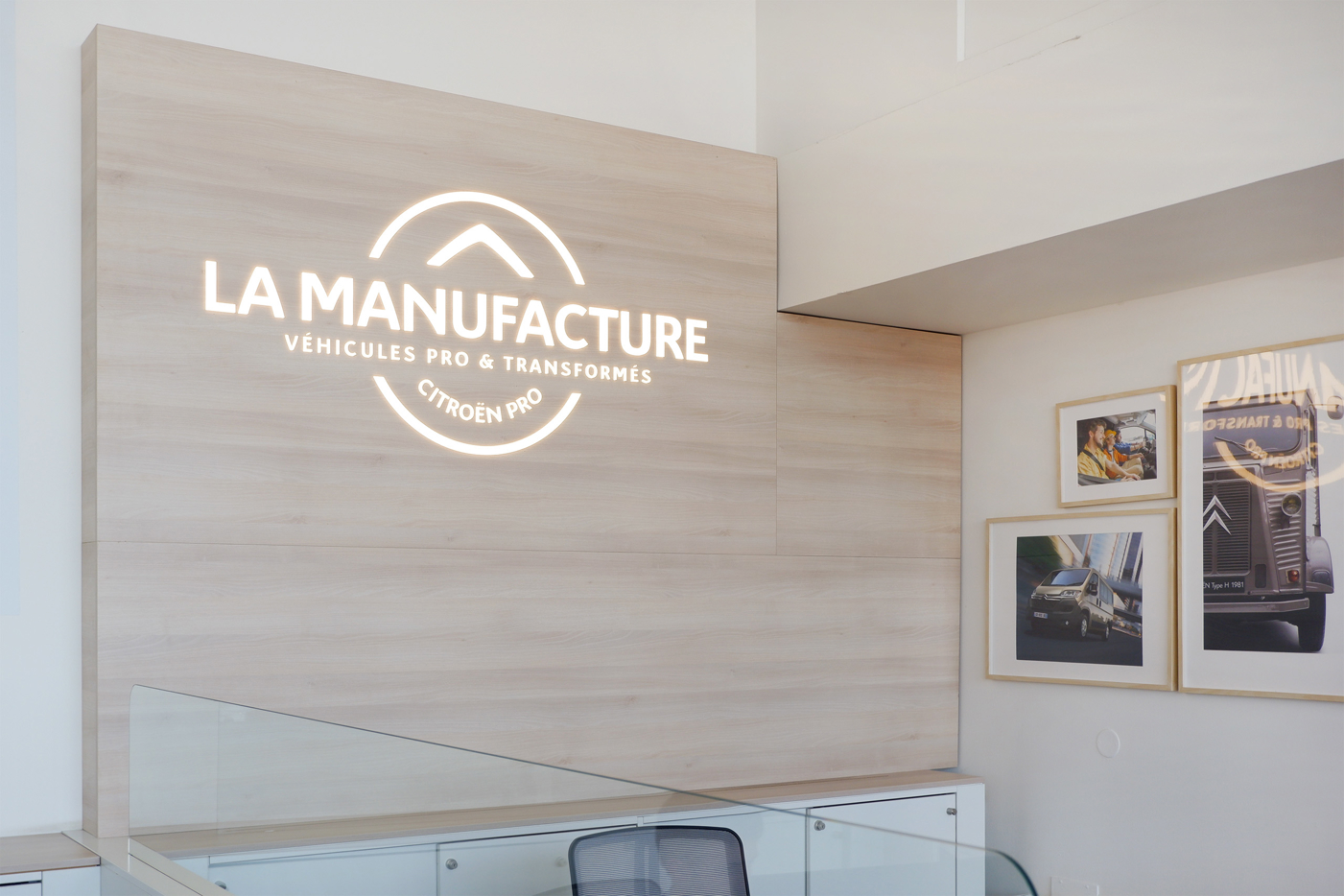 Car dealership design follows many regulations and obligations that often specify even the tiniest details. We will meet all those requirements to the last detail. Using your design book as the basis, we draft, develop, manufacture and assemble the entire outfitting of a showroom. Car makers such as Citroën or Peugeot know this well.