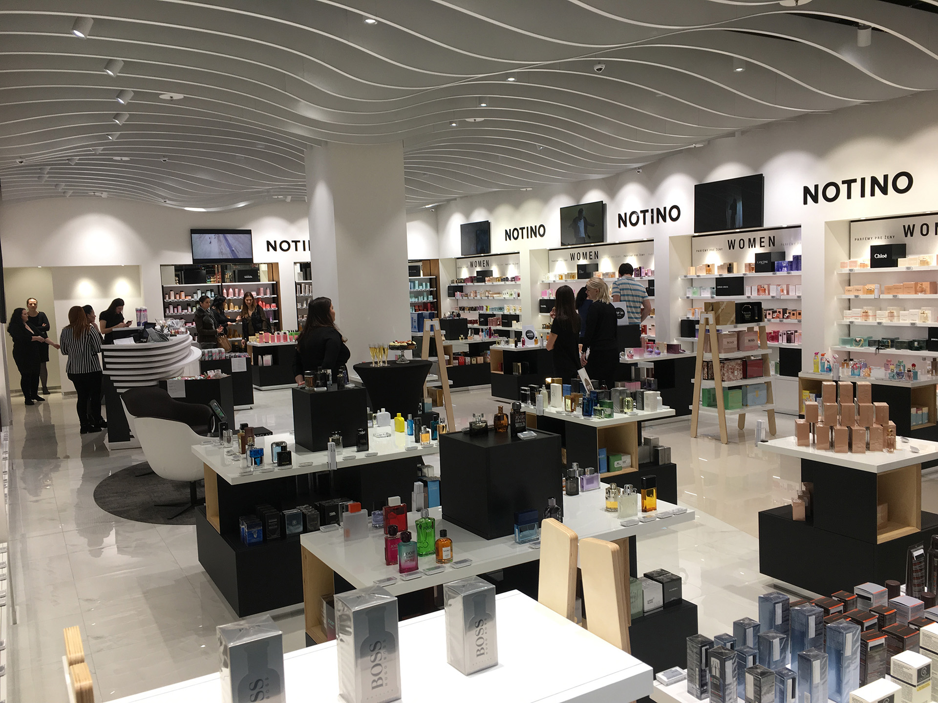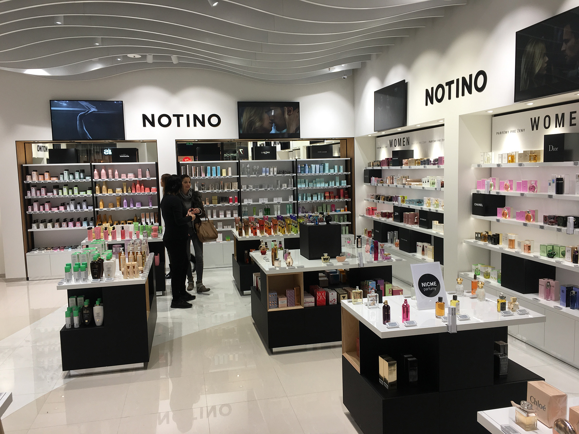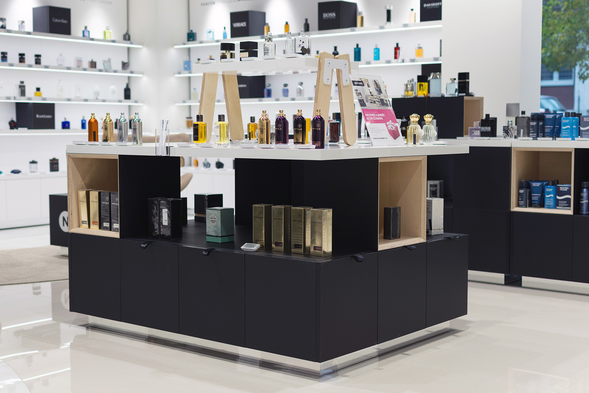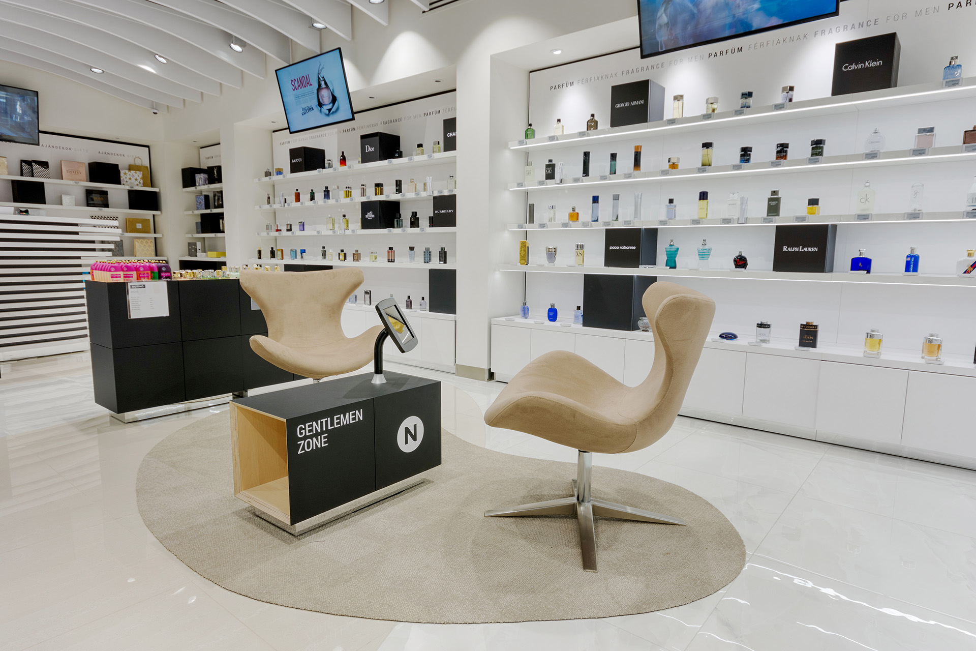 Realization of a store with cosmetics and perfumes for the Notino company in Budapest.