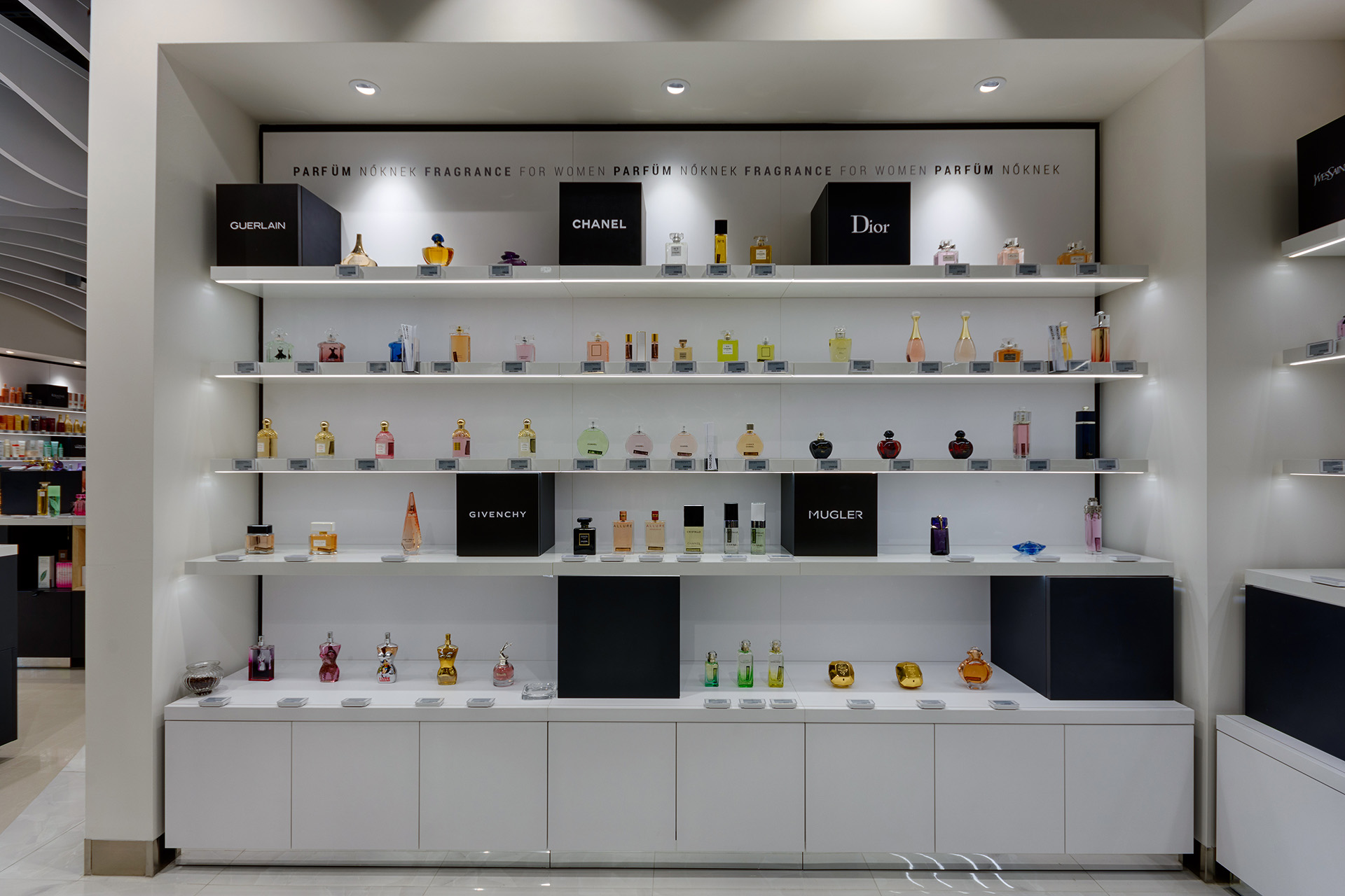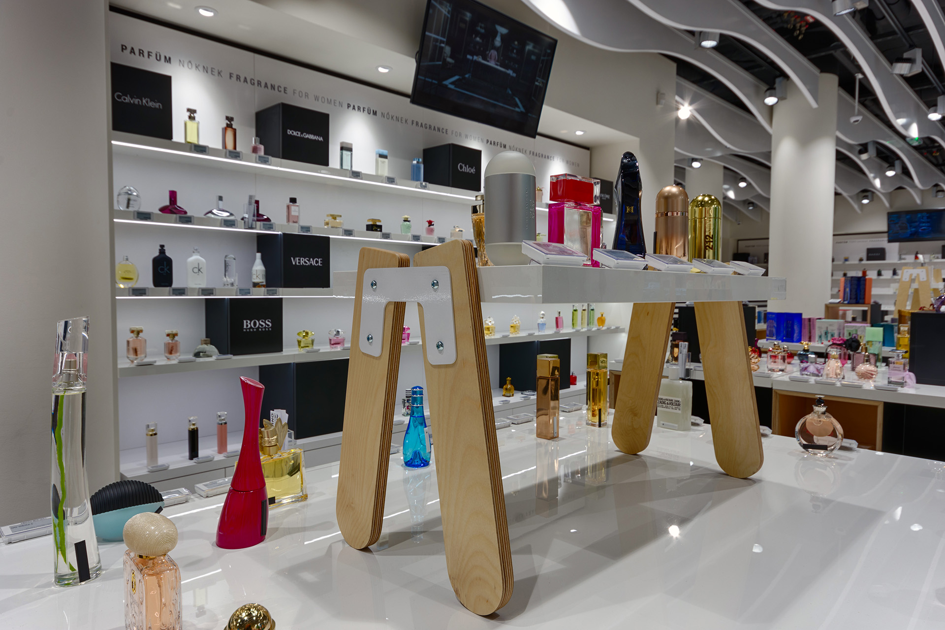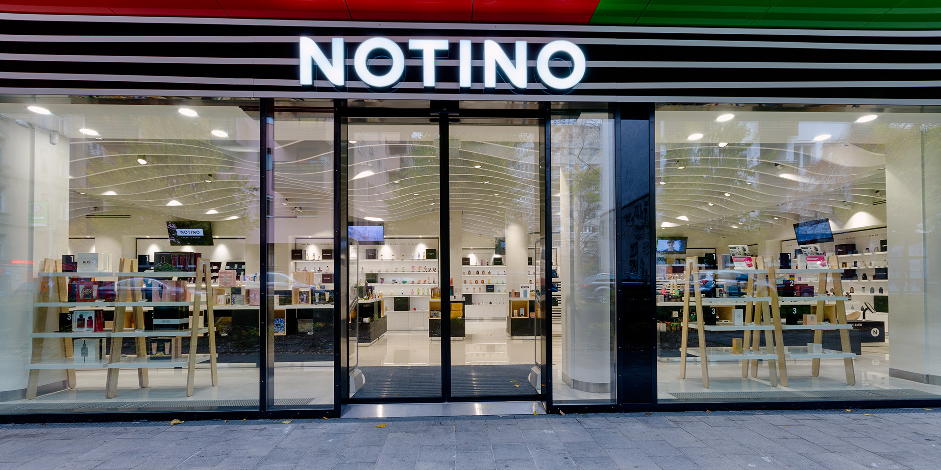 Realization of a store with cosmetics and perfumes for the Notino company in Budapest.
