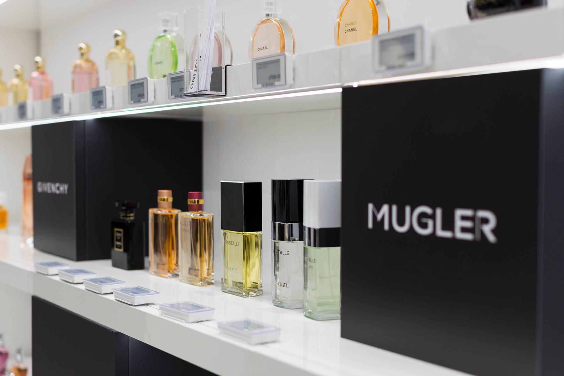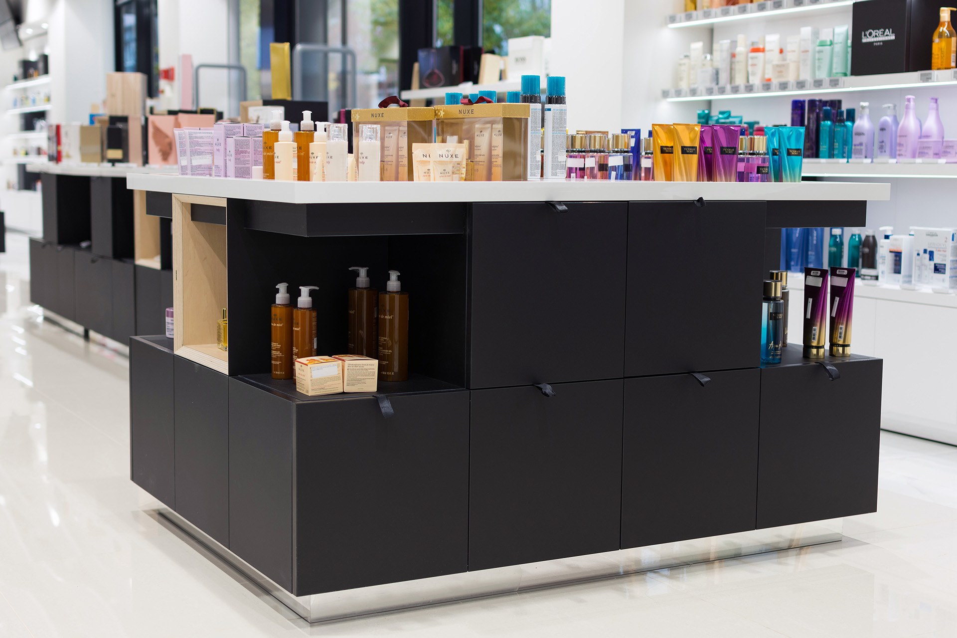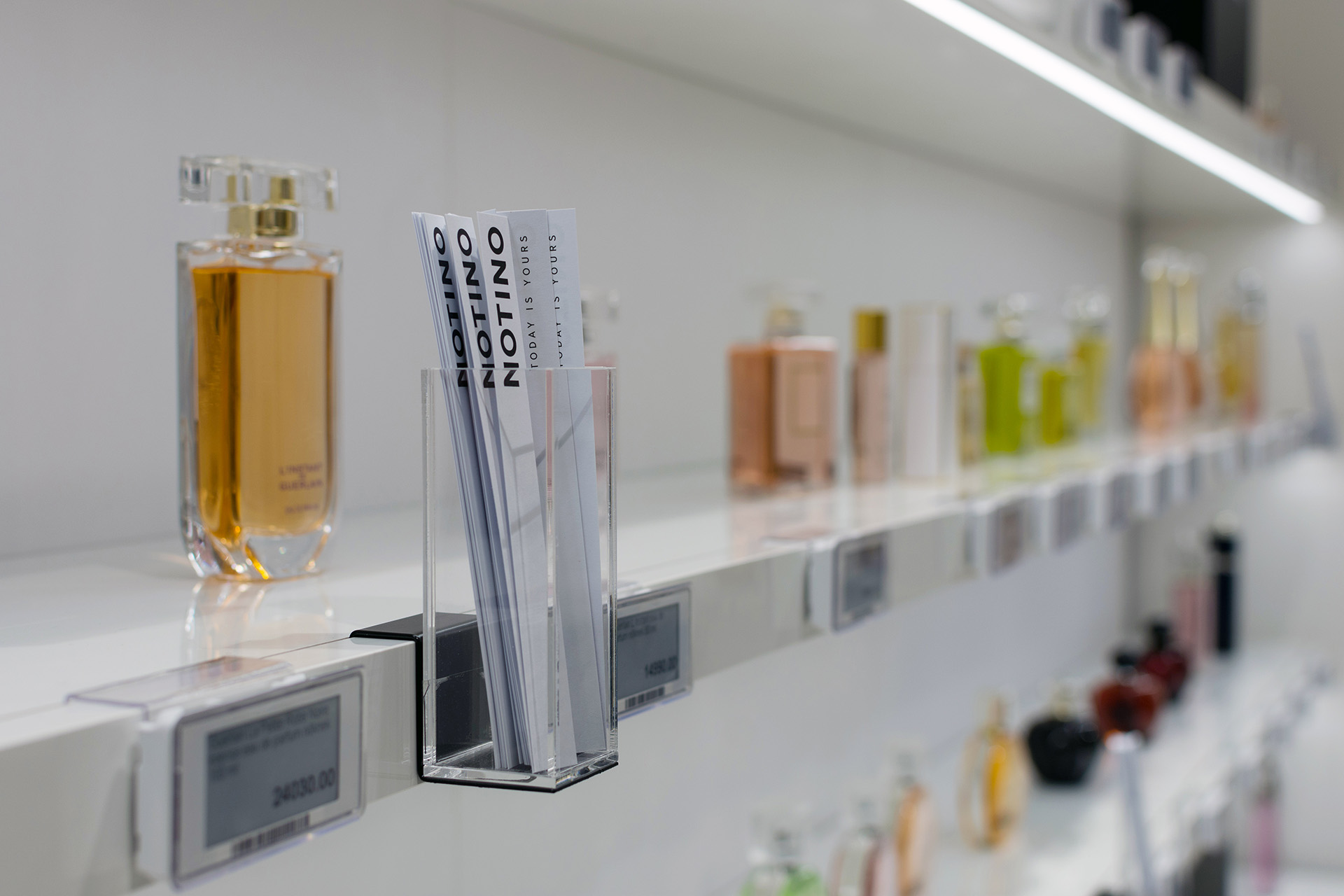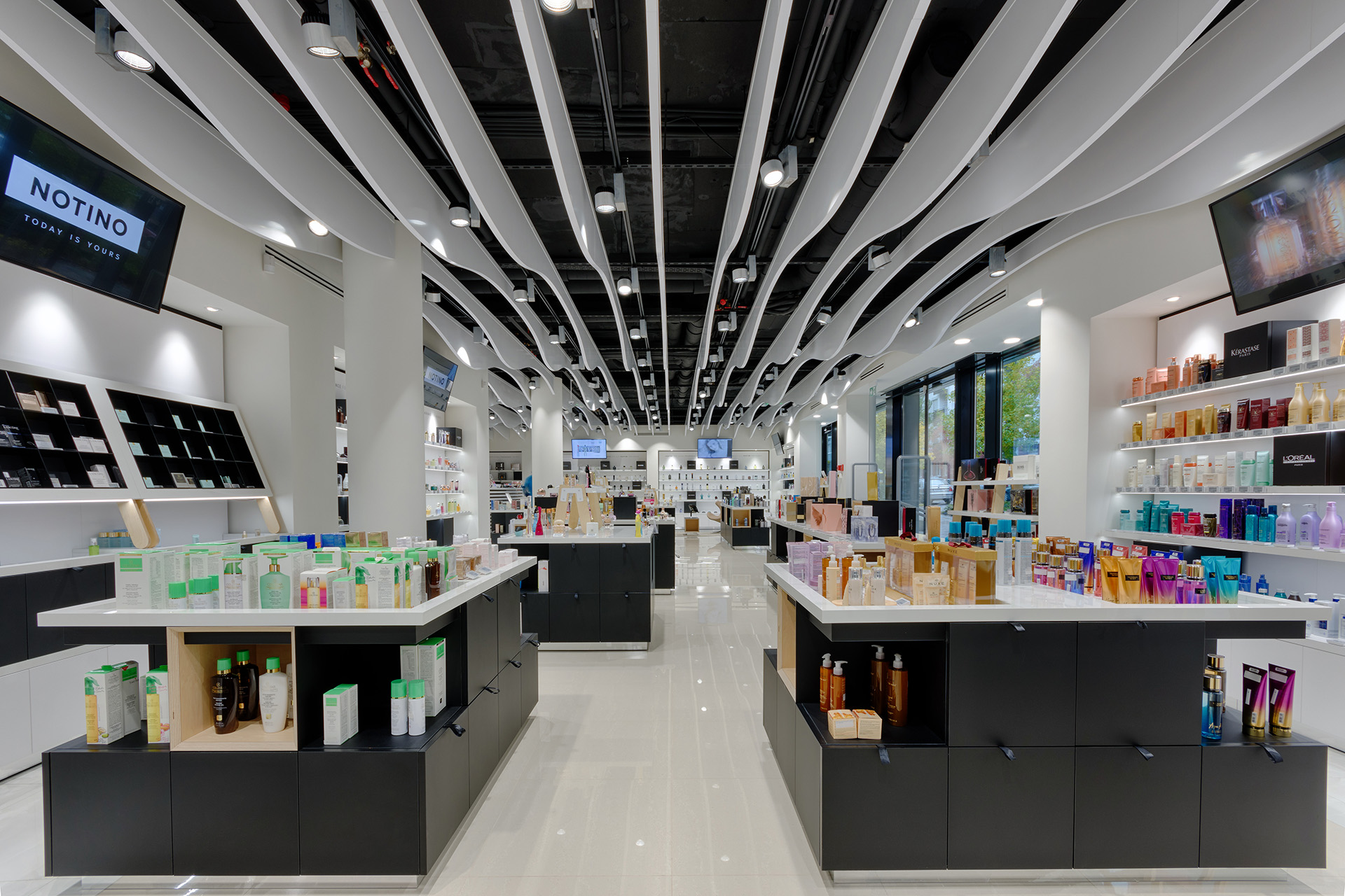 Realization of a store with cosmetics and perfumes for the Notino company in Budapest.