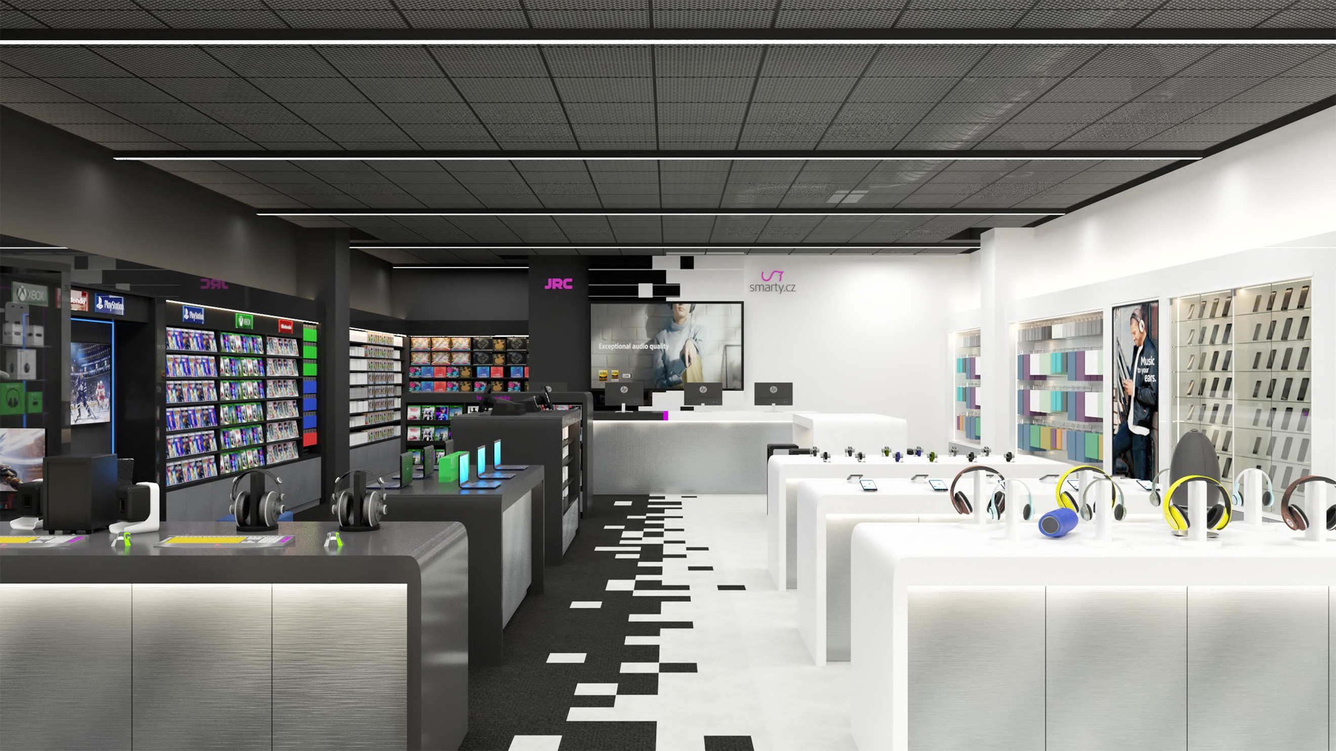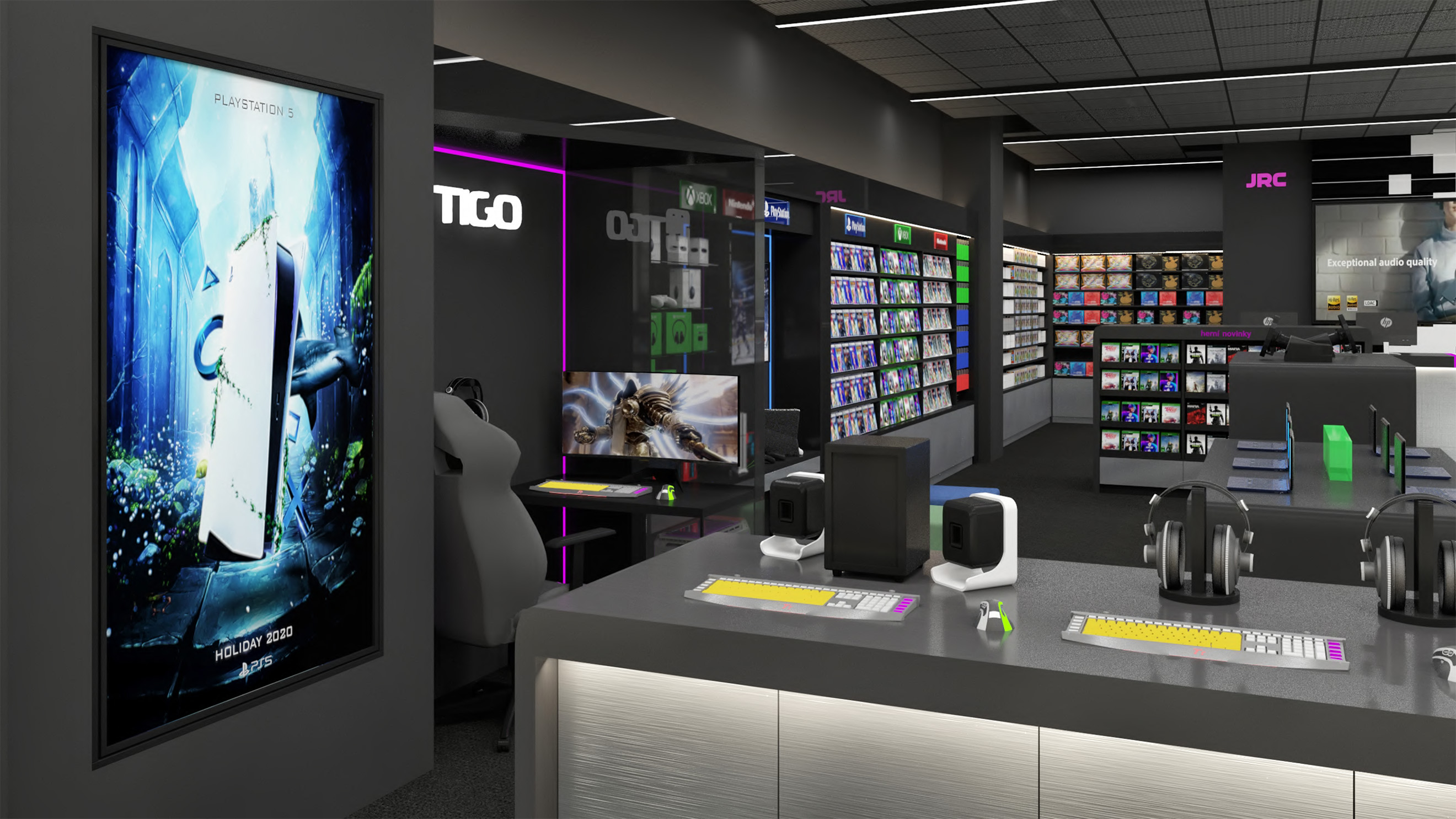 Design and realization of a unique store, where the world of games meets modern electronics.